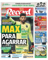 A primeira página do Record e o acesso ao ePaper do jornal.