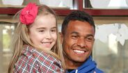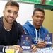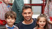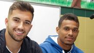 O encontro decorreu esta tarde e, quer o lateral formado nos fogaceiros, quer o extremo brasileiro que em janeiro reforçou o plantel de Filipe Martins, foram recebidos em êxtase por cerca de uma centena de alunos até aos 10 anos de idade.