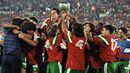 Penálti assinalado pelo árbitro português originou protestos por parte da formação anfitriã