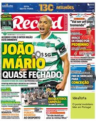 A primeira página do Record e o acesso ao ePaper do jornal.